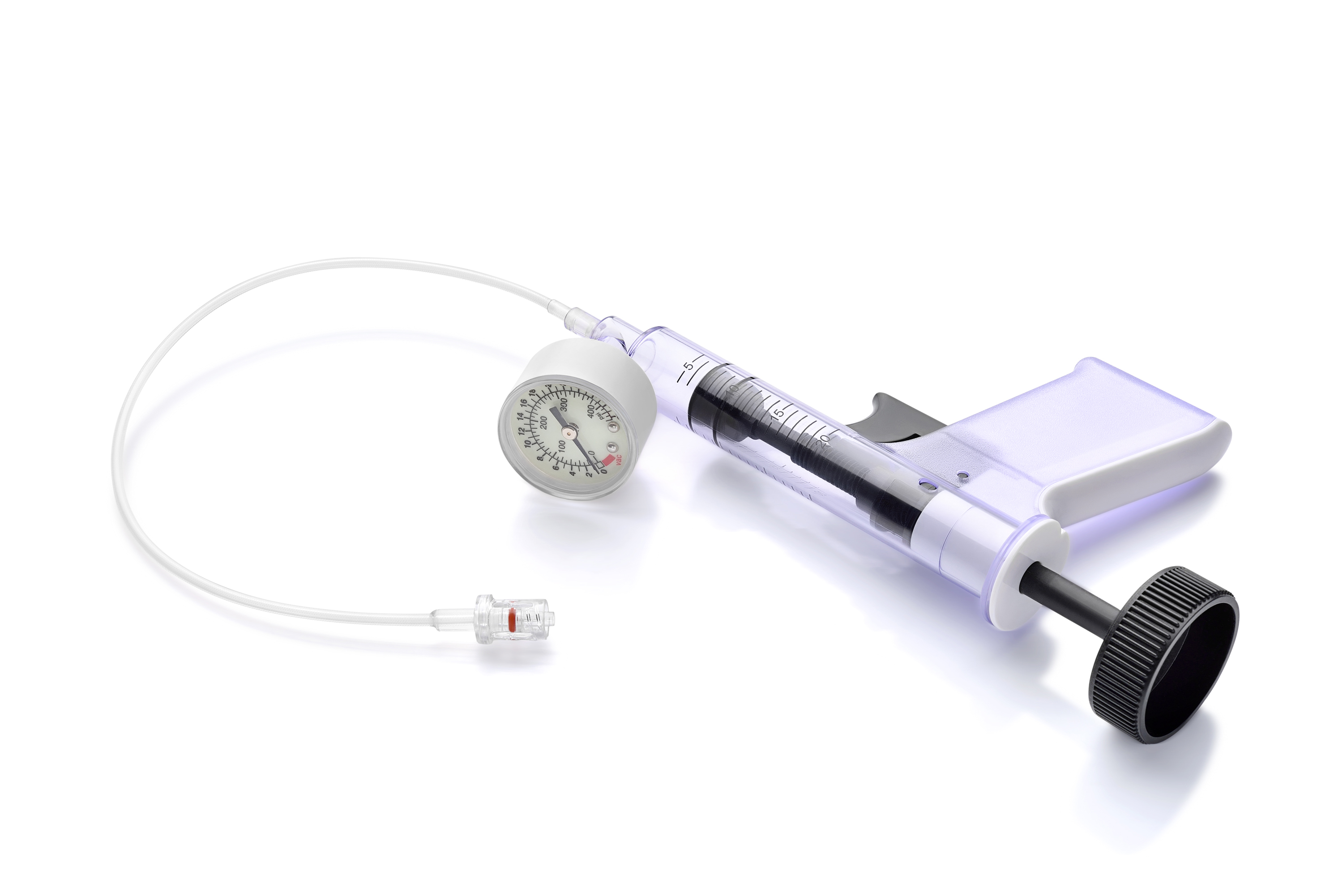 適用范圍:用于PTCA(心血管介入)手術中,與球囊擴張導管連接使用,通過壓力表顯示的壓力值,對球囊作精確充盈及收縮,從而達到擴張或收縮球囊的目的。
